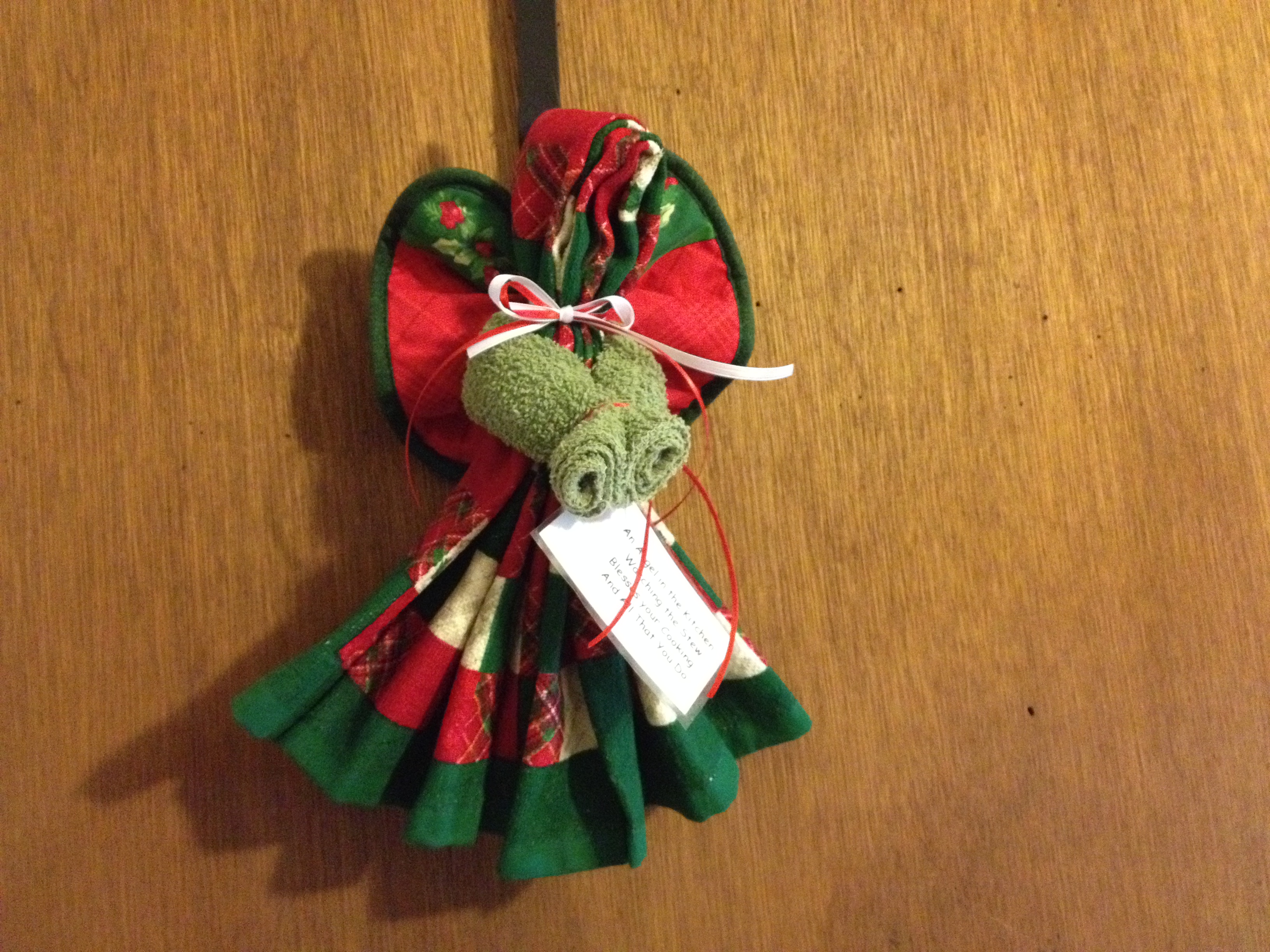 1/4″ ribbon to match or compliment (or you can make a yarn bow)
