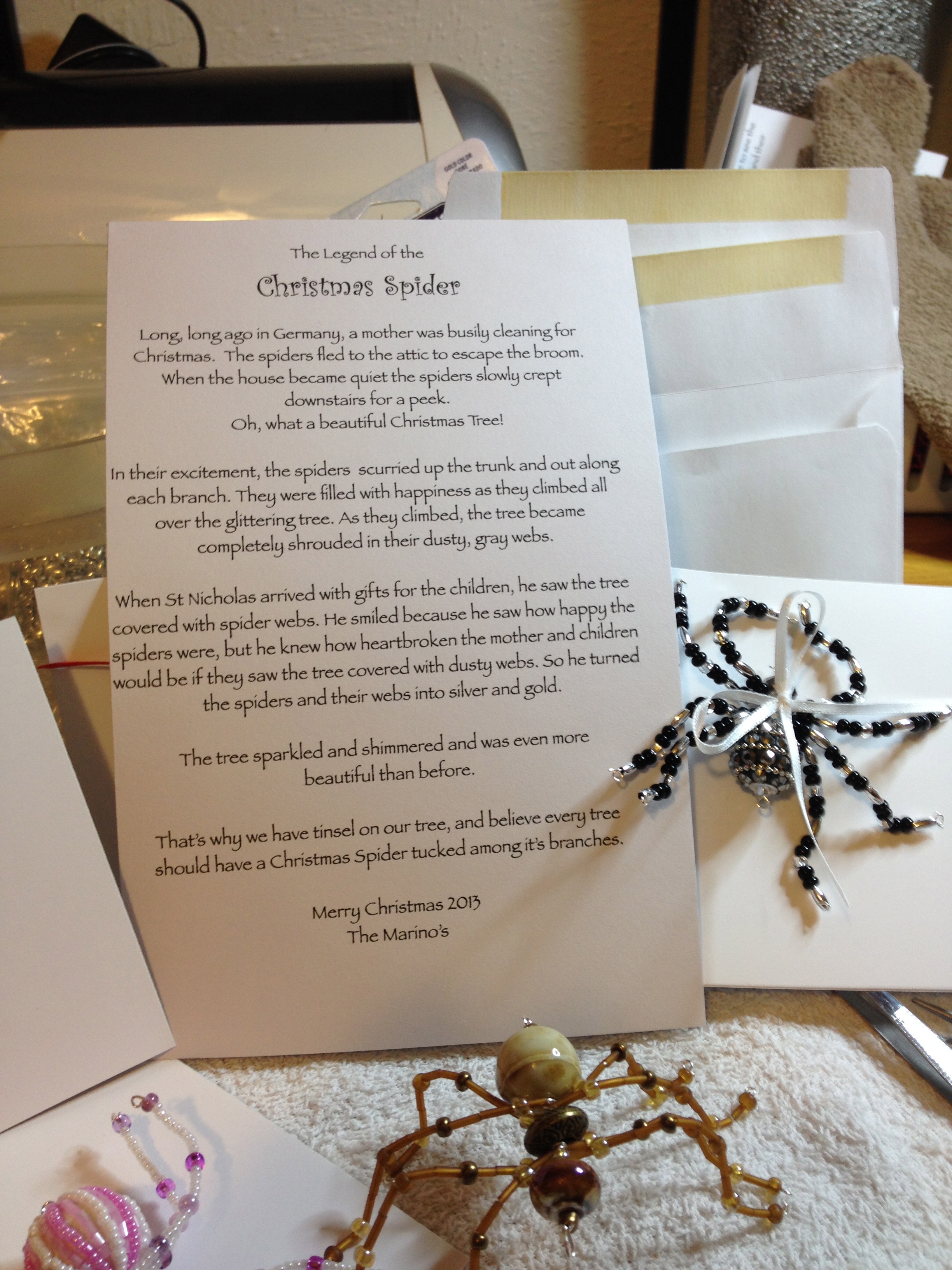 Here’s my version of the Legend of the Christmas Spider:  (I edited the version on my cards to fit the font and card size)